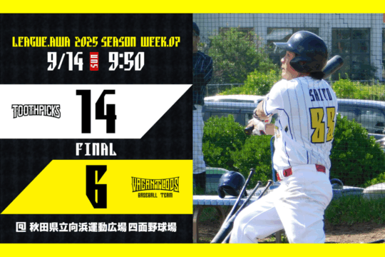 黄色欄が一塁側ベンチで先攻、黒色欄が三塁側ベンチで後攻になります。